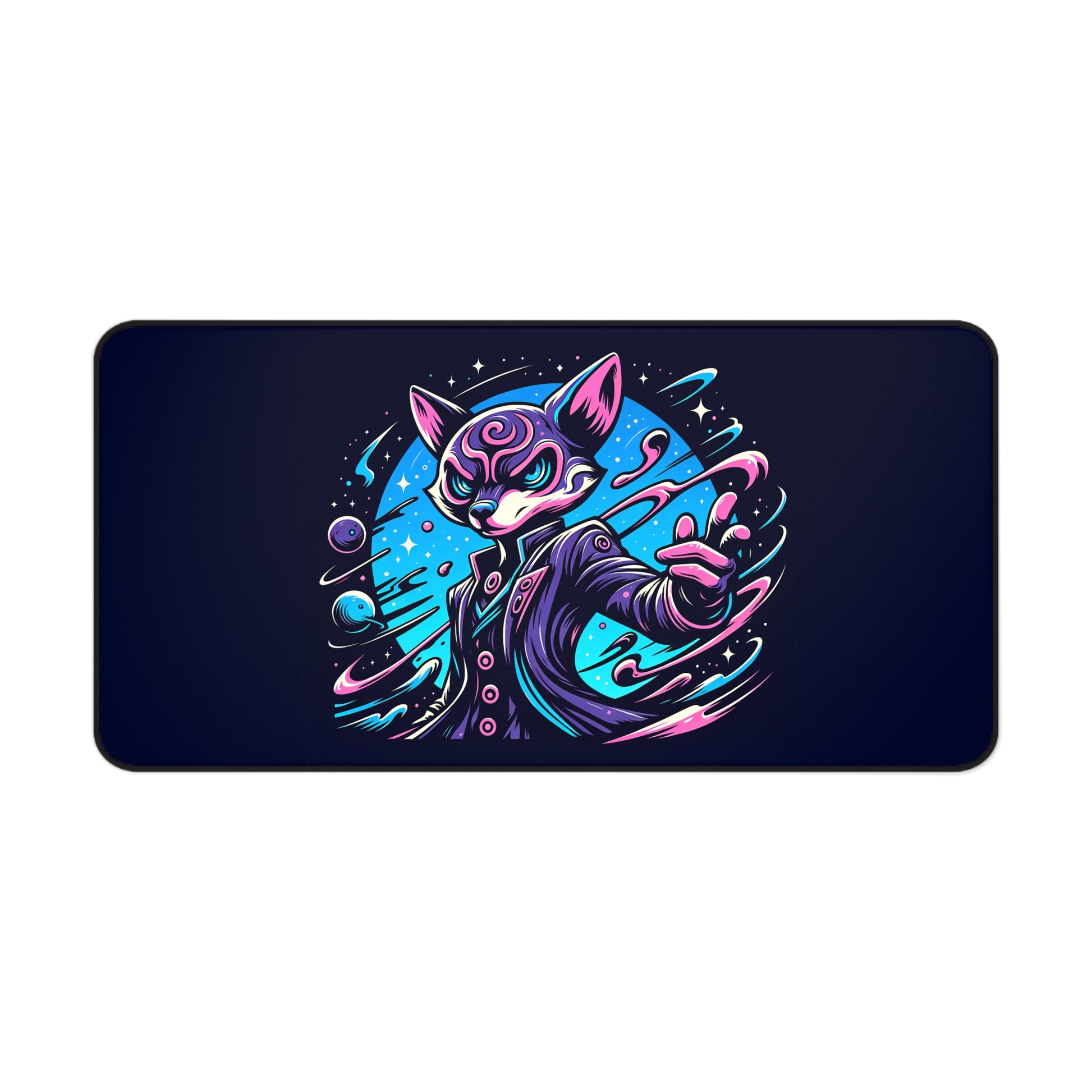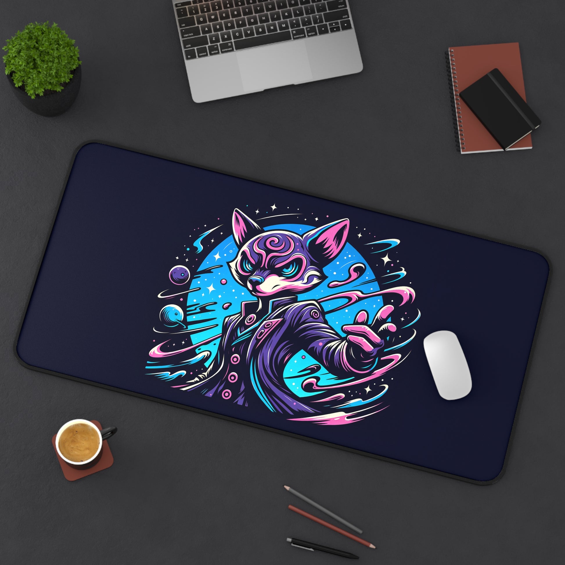 This eye-catching accessory features a dapper, animated fox character surrounded by a cosmic swirl of planets and stars. Crafted with a bright, colorful comic graphic design, this oversized mousepad adds a touch of playful personality to your workspace. Whether you're a fan of quirky illustrations or just love to let your mouse roam freely, the Bizarre Sly Fox XL Mousepad is the perfect addition to your desk.