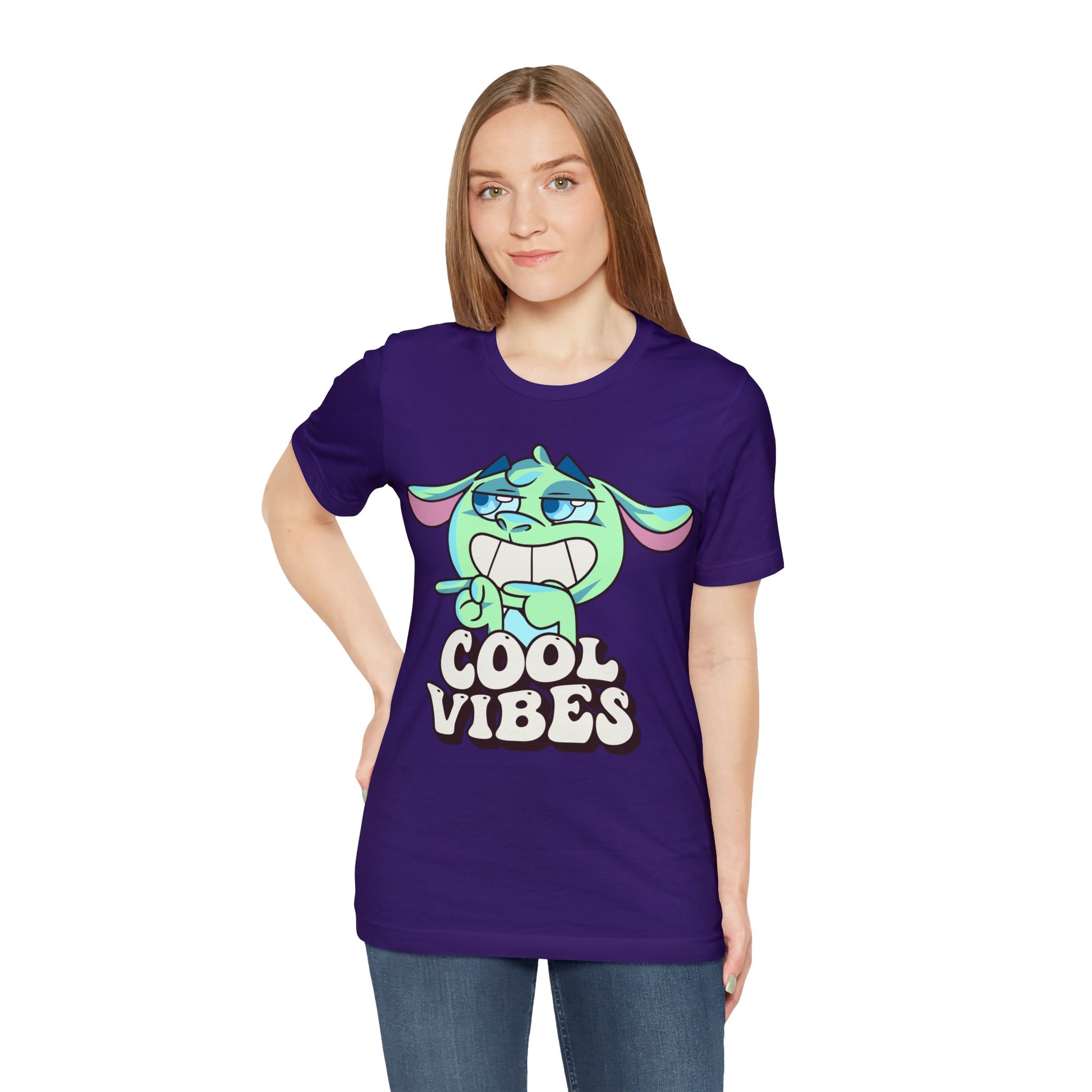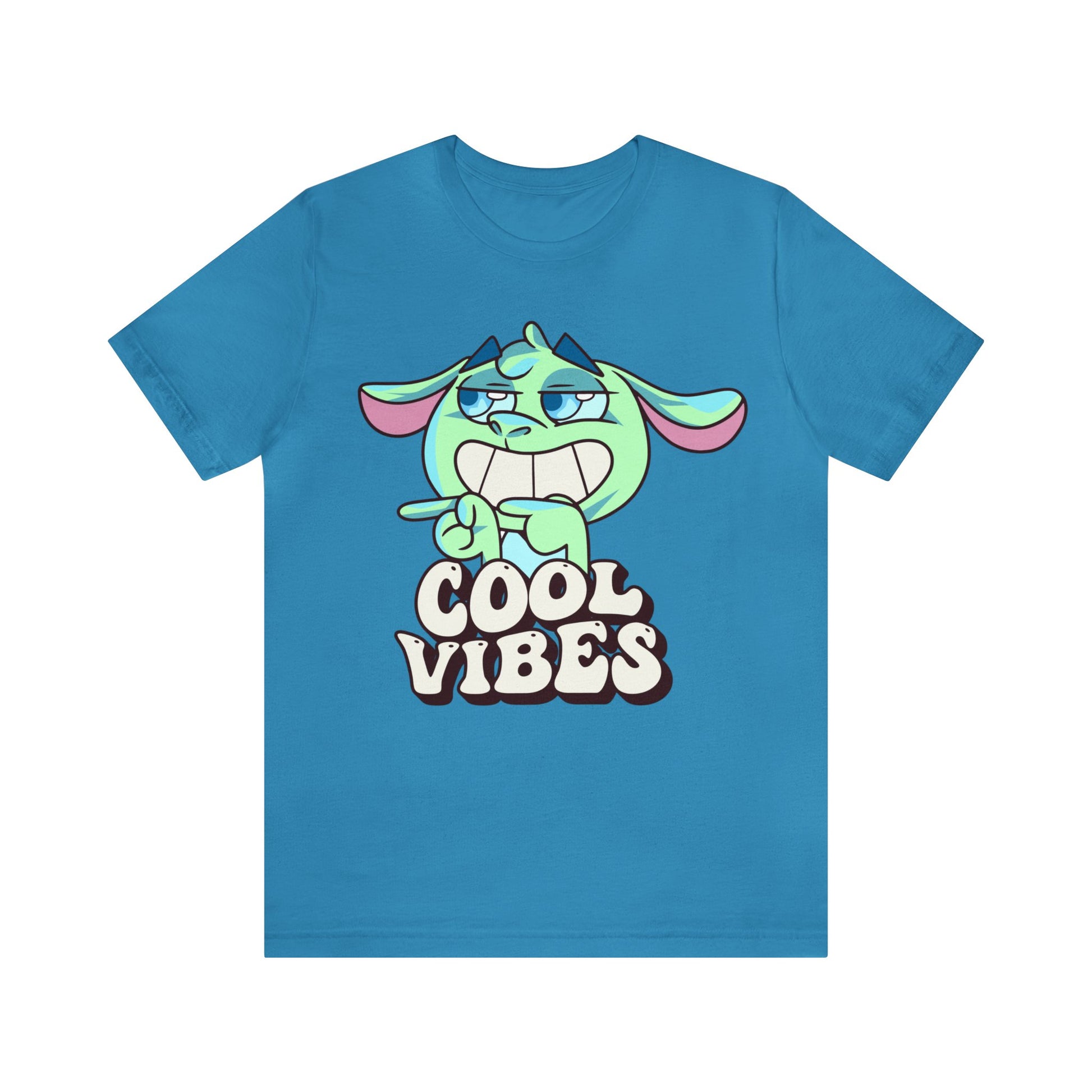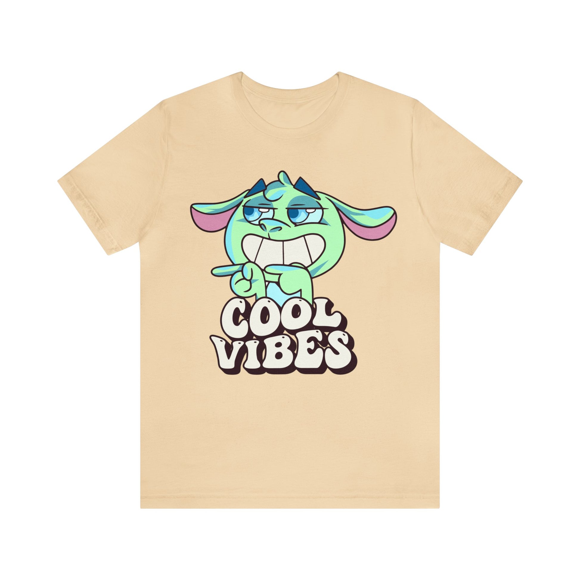 Infuse your wardrobe with trendsetting flair by donning our Cool Vibes Emote Tee. This trendy t-shirt showcases a 'cool vibes' emote, epitomizing a chic and relaxed vibe that effortlessly elevates your fashion game.