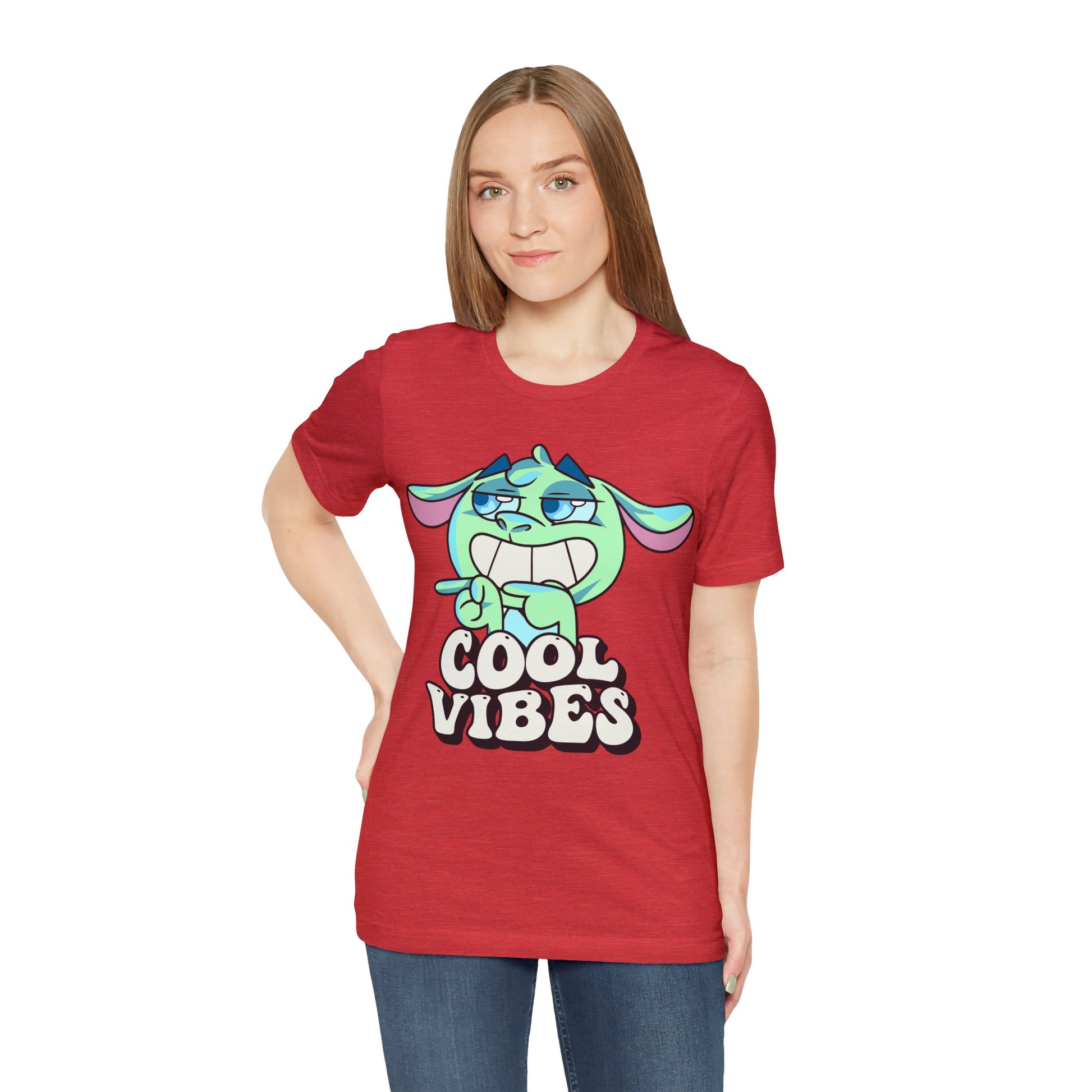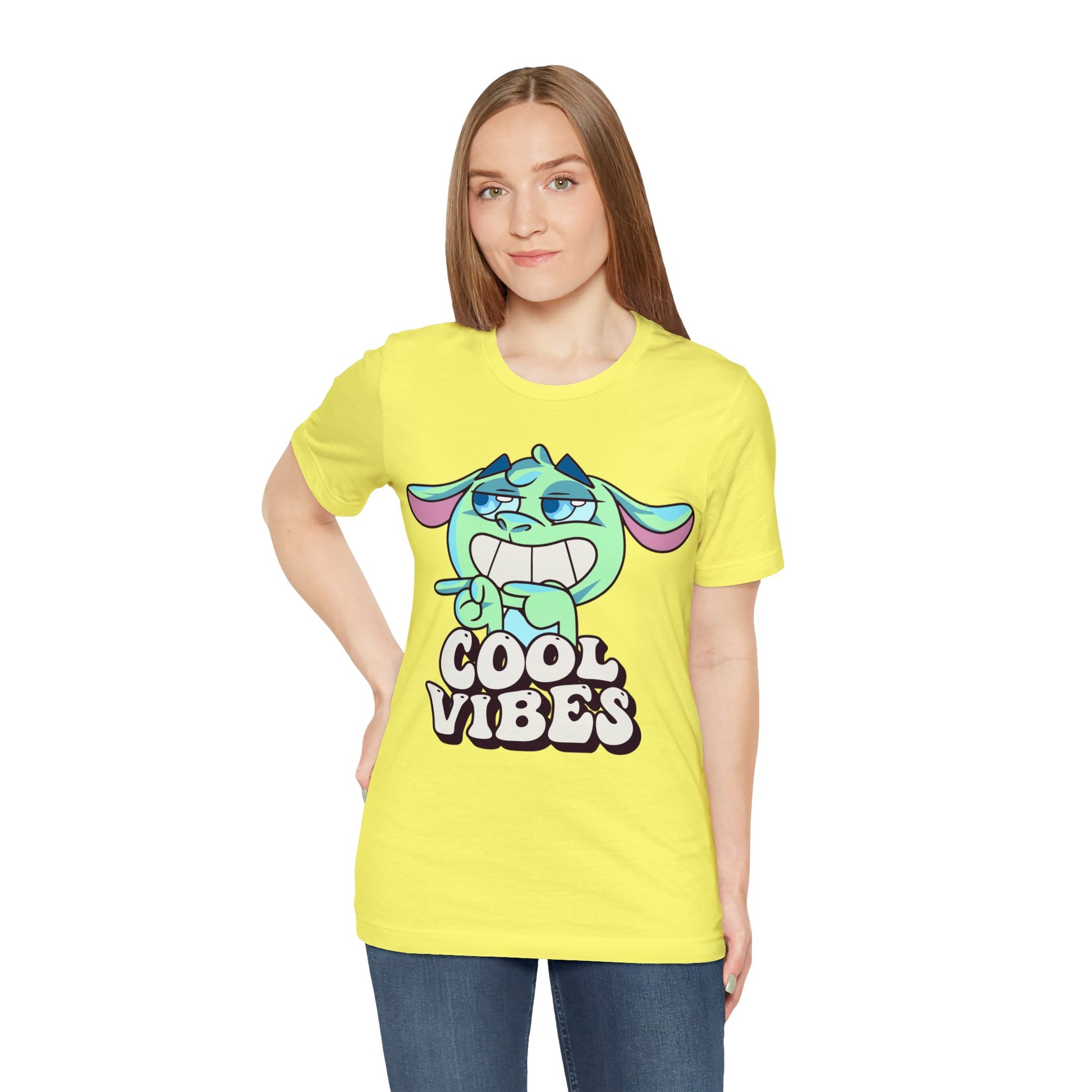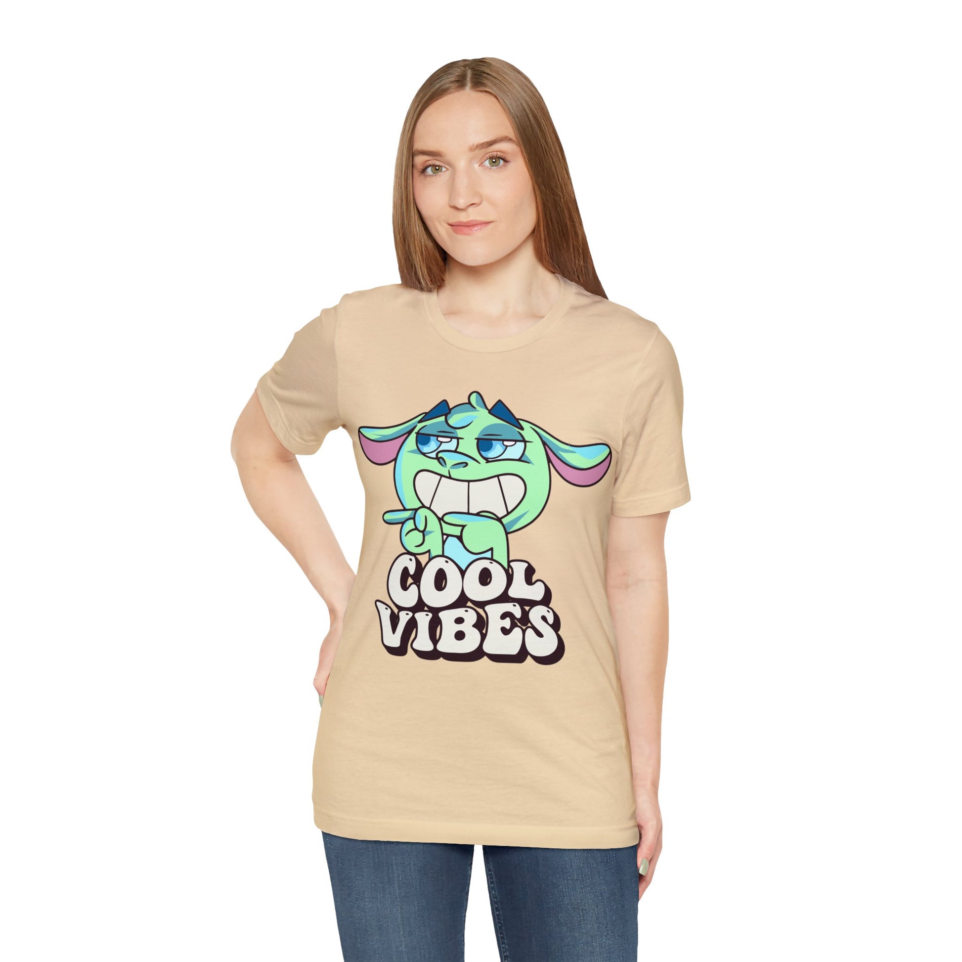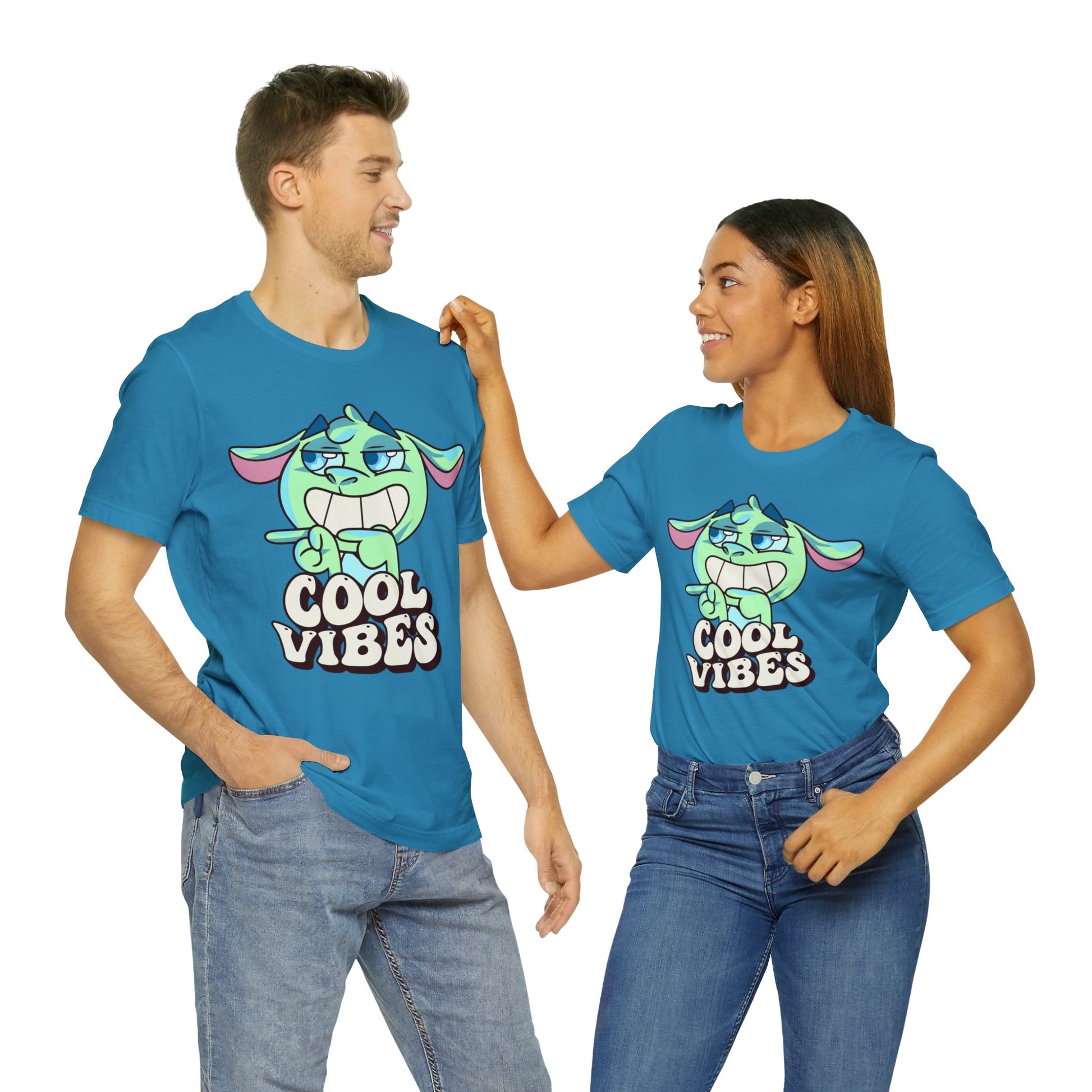Infuse your wardrobe with trendsetting flair by donning our Cool Vibes Emote Tee. This trendy t-shirt showcases a 'cool vibes' emote, epitomizing a chic and relaxed vibe that effortlessly elevates your fashion game.