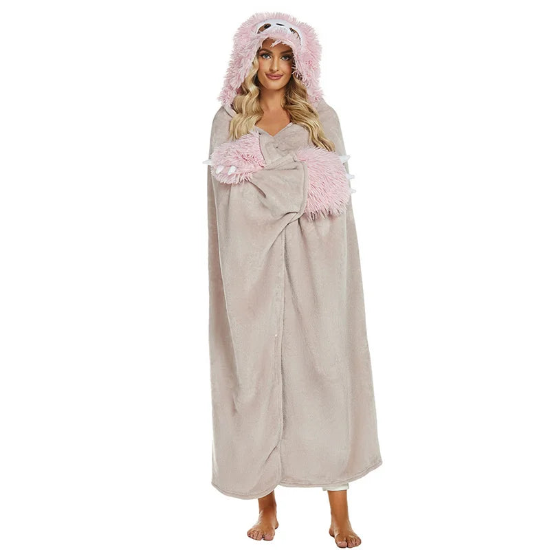 Elevate your lounging experience with the Cozy Cute Animal Hooded Blanket with Gloves - a must-have for those who appreciate a blend of comfort and charming design.