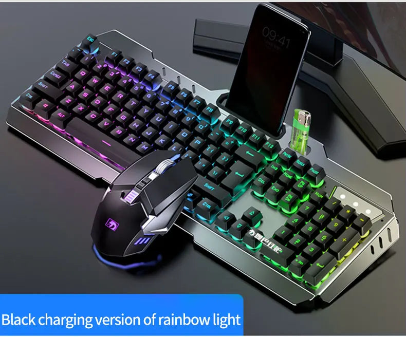 Introducing the Multimedia Ergonomic Waterproof Keyboard with Metal Panel — a high-performance gaming keyboard and mouse combo that seamlessly blends functionality and style. Designed for gaming enthusiasts, this multimedia keyboard features an ergonomic layout, a waterproof design for durability, and a sleek metal panel for a touch of sophistication. With a powerful 3000mAh rechargeable battery and 2.4G wireless connectivity, this combo delivers a seamless and immersive gaming experience. Here's an overview of its features: