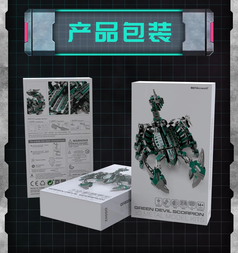 - Detailed 3D metal puzzle model kit of a Green Devil Scorpion.