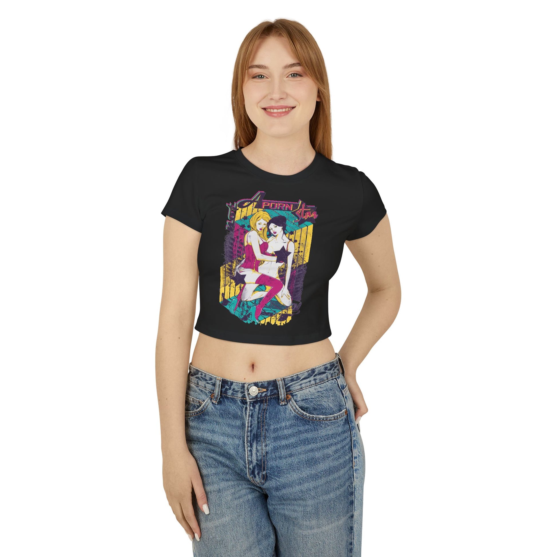 Embrace vintage-inspired confidence with the "I'm Not a Star" Baby Tee, featuring a striking retro graphic of two women in lingerie cuddling, paired with the bold statement: "I'm Not a Porn Star." This sleek, mid-length baby tee is designed to turn heads while offering a flattering slim fit that accentuates your silhouette.