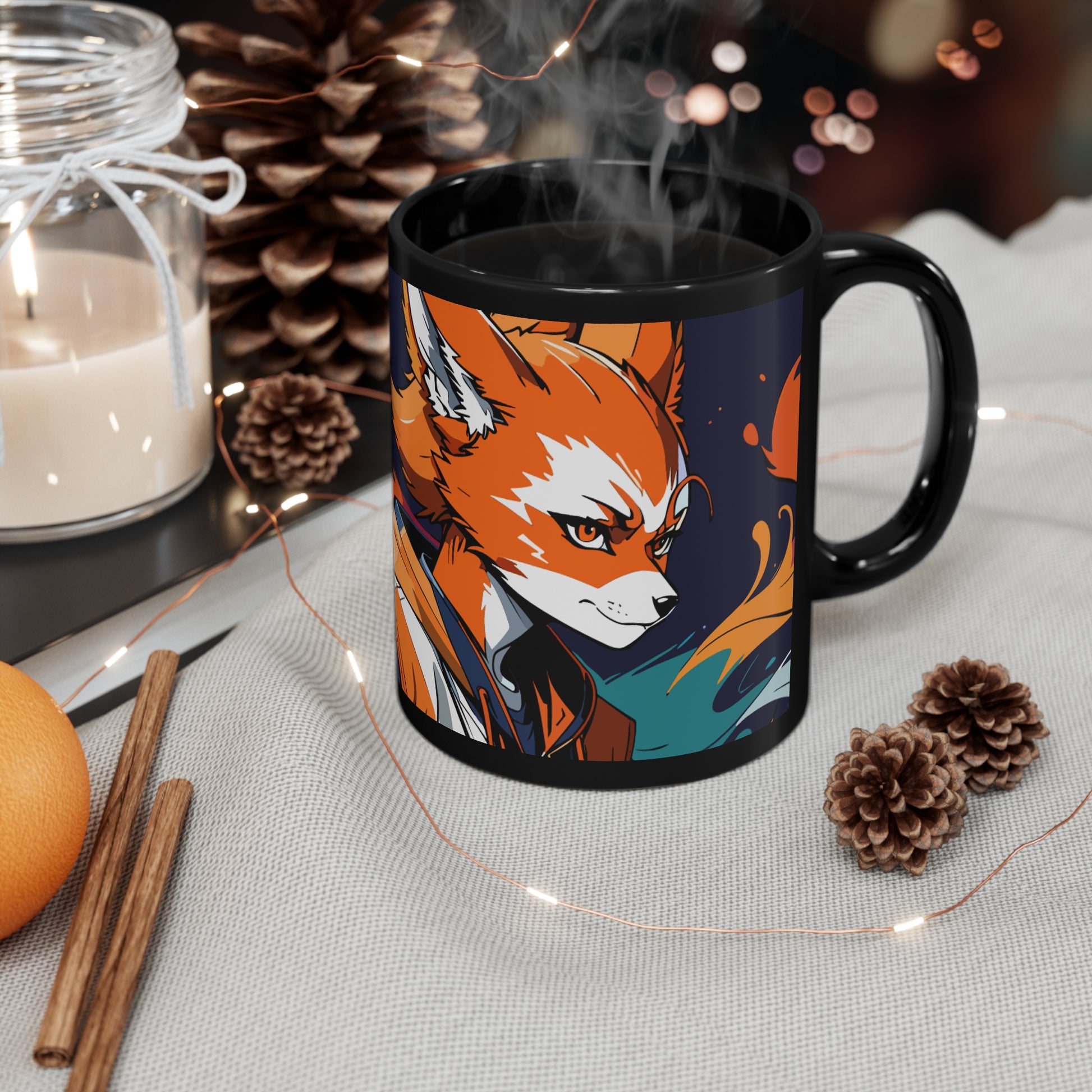 Kitsune 11oz Black Mug