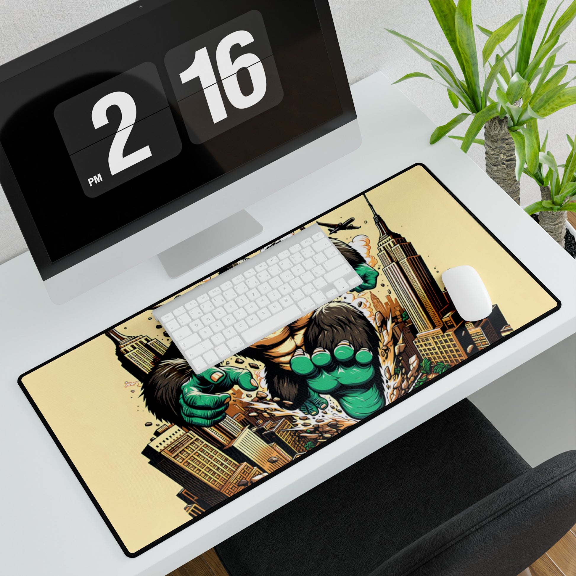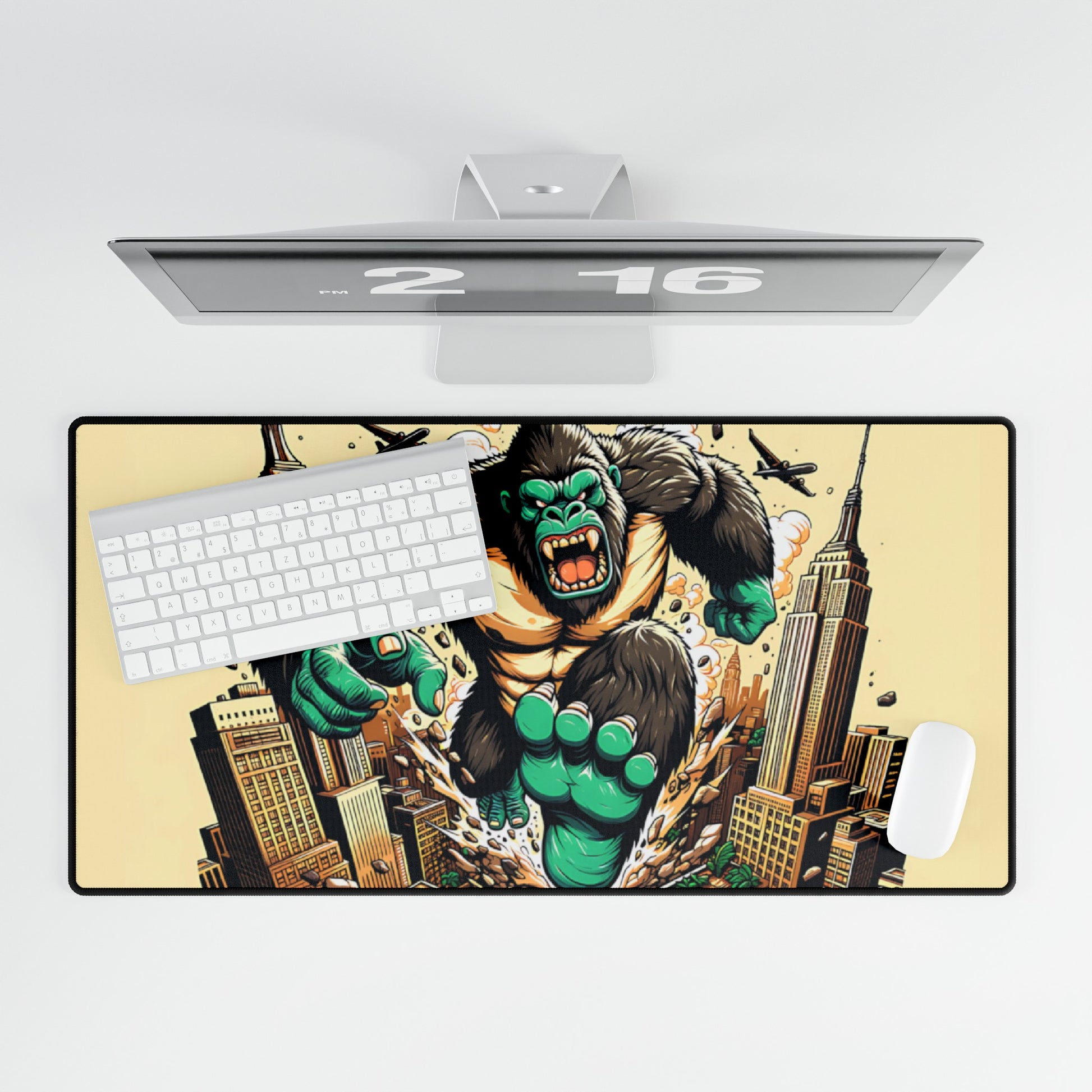 Get ready to unleash your creativity on a giant scale with the Kong Takes NY XXL Mousepad! This oversized mousepad is a stunning tribute to the King of Monsters, featuring an epic illustration of King Kong in a vibrant Japanese pop art style. The design depicts Kong wreaking havoc on the Big Apple, destroying everything in his path as he charges through the city streets. Blending Japanese graphic vector style with hip hop art influences, anime-style accents, and propaganda poster elements, this unique design is a true masterpiece of urban art. The XXL size provides ample space for your mouse to glide smoothly, making it perfect for gamers, graphic designers, and anyone who wants to add a touch of urban cool to their workspace.
