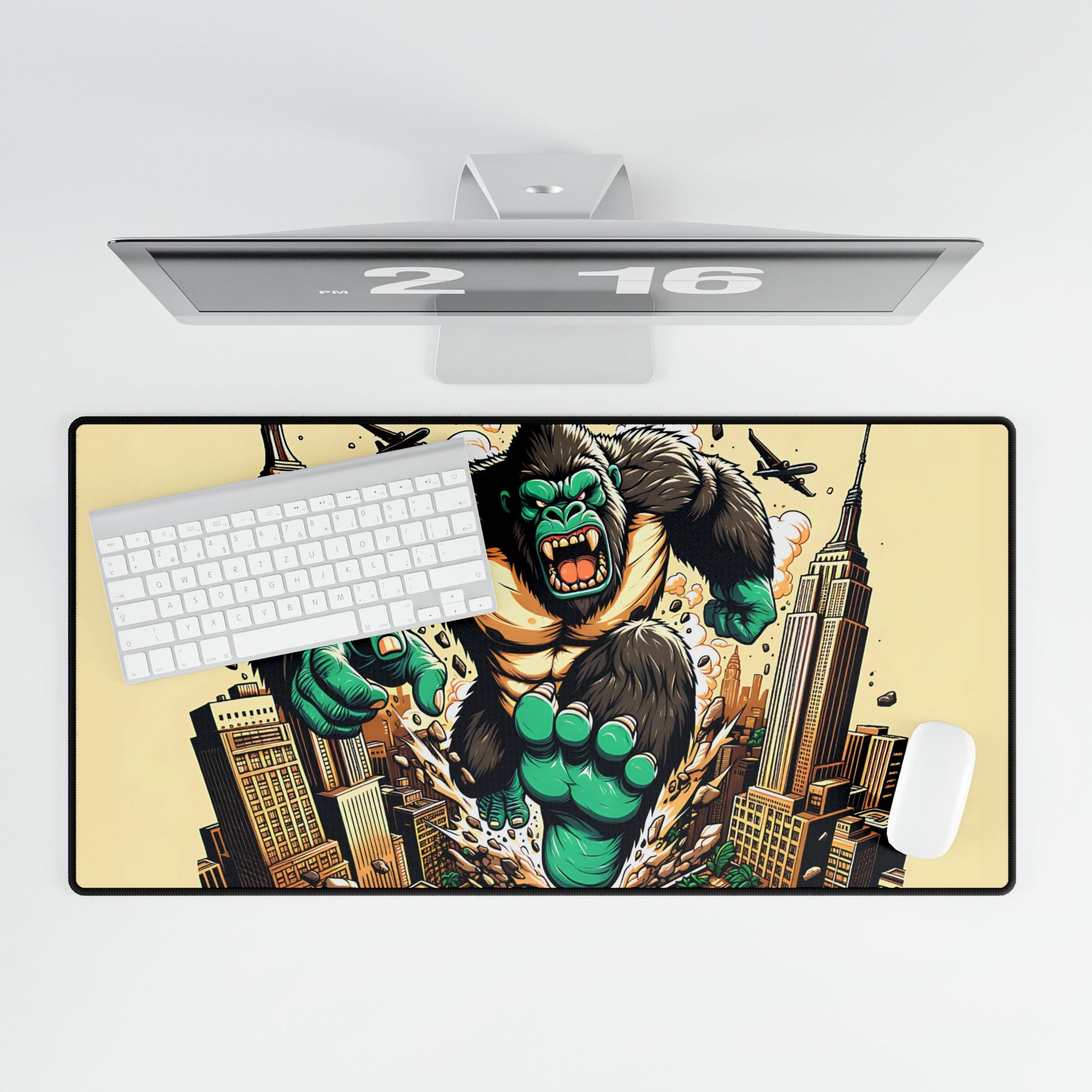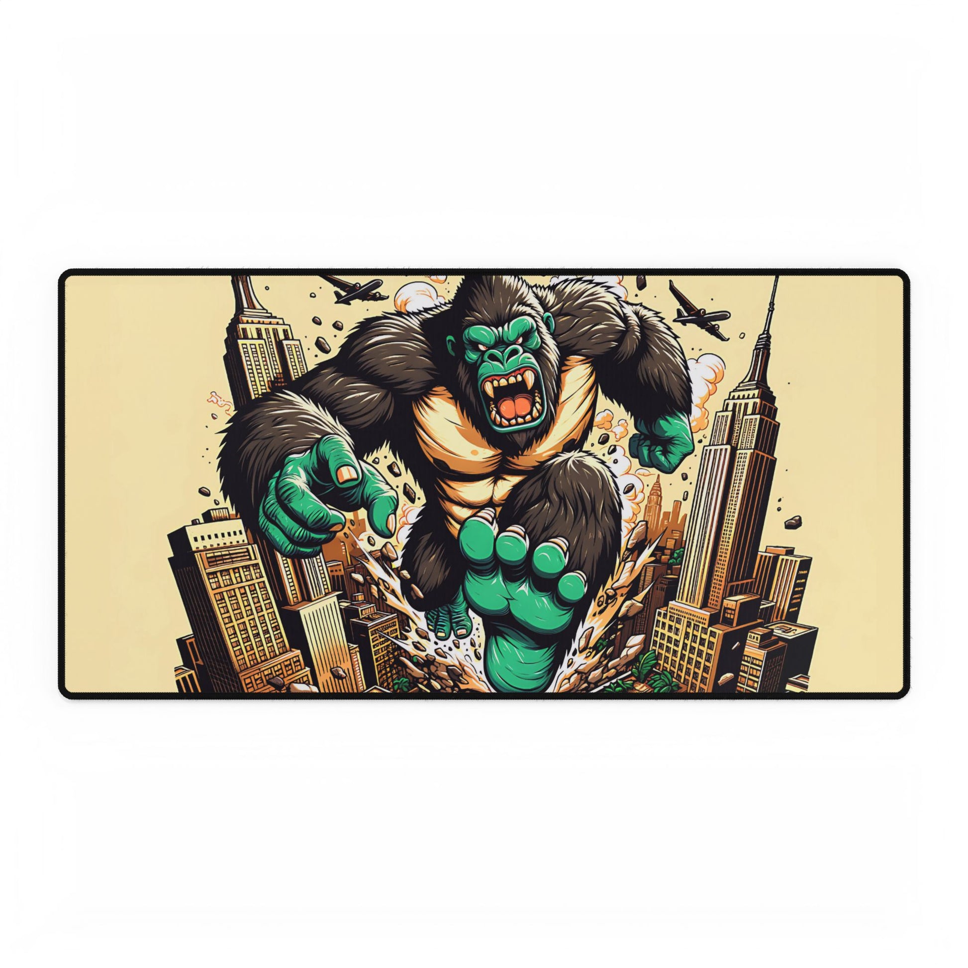 Get ready to unleash your creativity on a giant scale with the Kong Takes NY XXL Mousepad! This oversized mousepad is a stunning tribute to the King of Monsters, featuring an epic illustration of King Kong in a vibrant Japanese pop art style. The design depicts Kong wreaking havoc on the Big Apple, destroying everything in his path as he charges through the city streets. Blending Japanese graphic vector style with hip hop art influences, anime-style accents, and propaganda poster elements, this unique design is a true masterpiece of urban art. The XXL size provides ample space for your mouse to glide smoothly, making it perfect for gamers, graphic designers, and anyone who wants to add a touch of urban cool to their workspace.