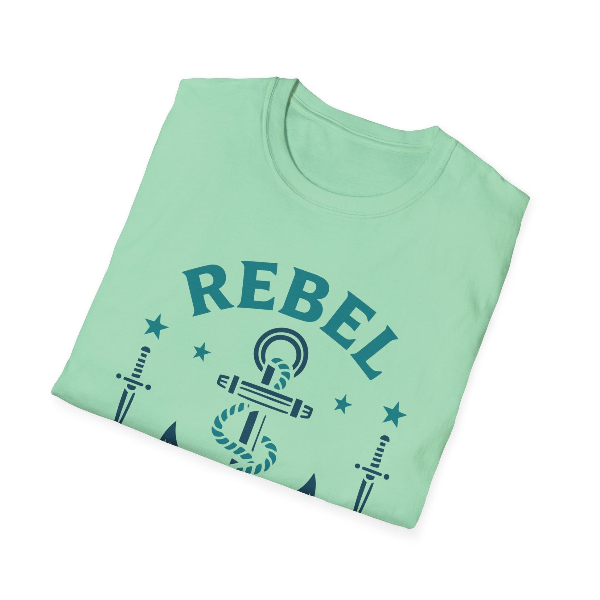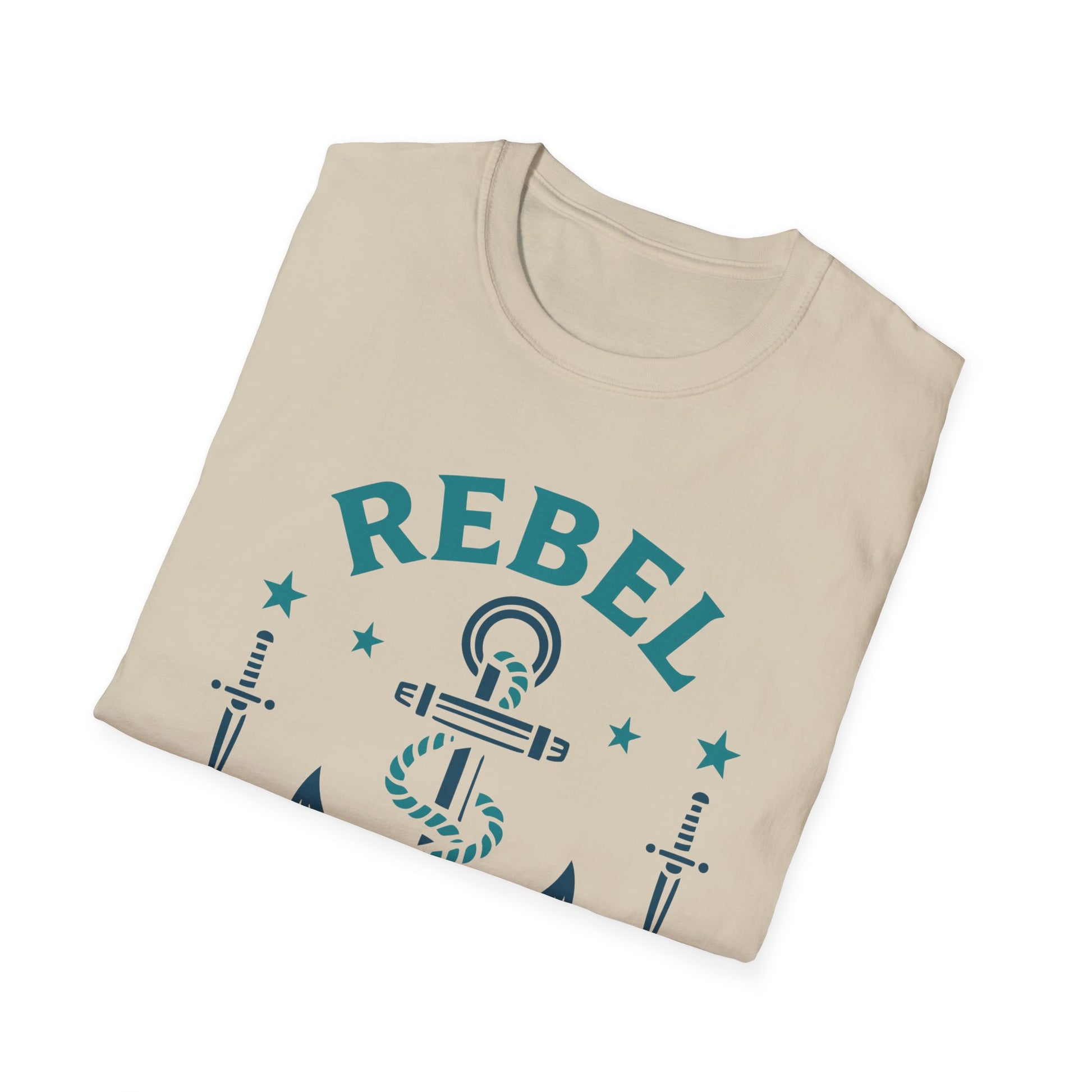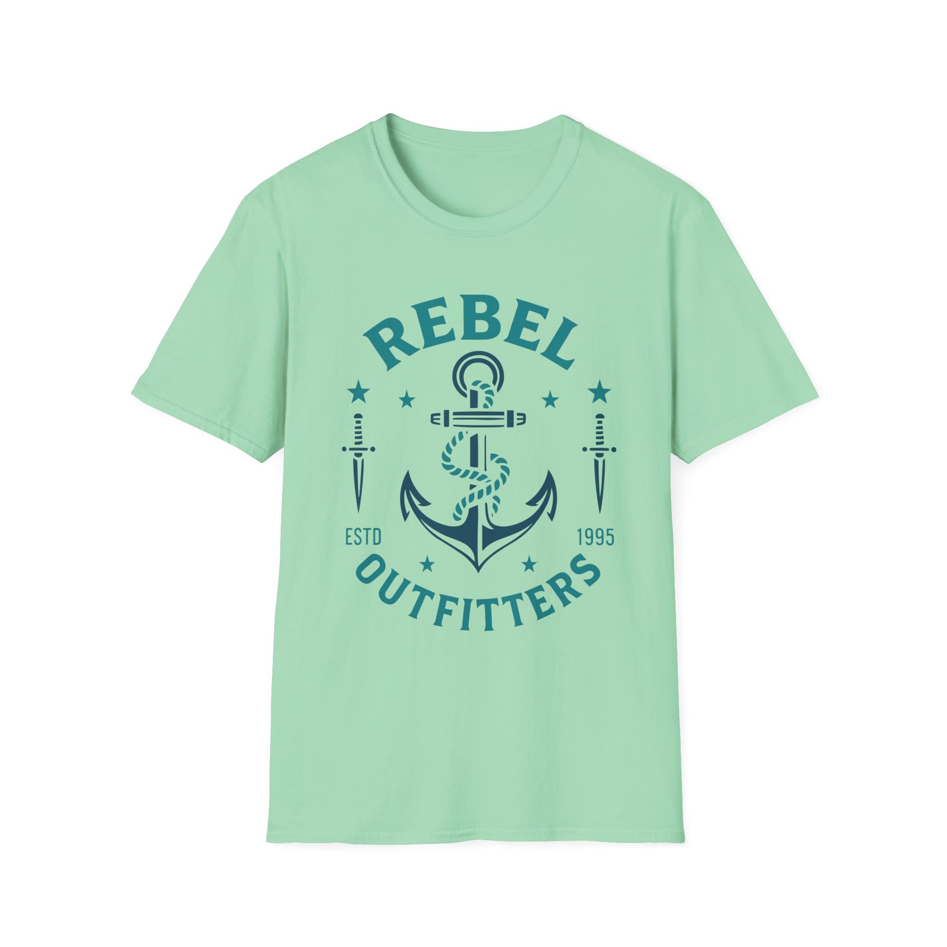 Rebel Outfitters Graphic Anchor T-Shirt, a nautical fashion shirt with vintage style vibes. Perfect for those who love the sea and want to showcase their rebellious spirit. Ideal for casual wear, beach outings, or maritime-themed events and parties.