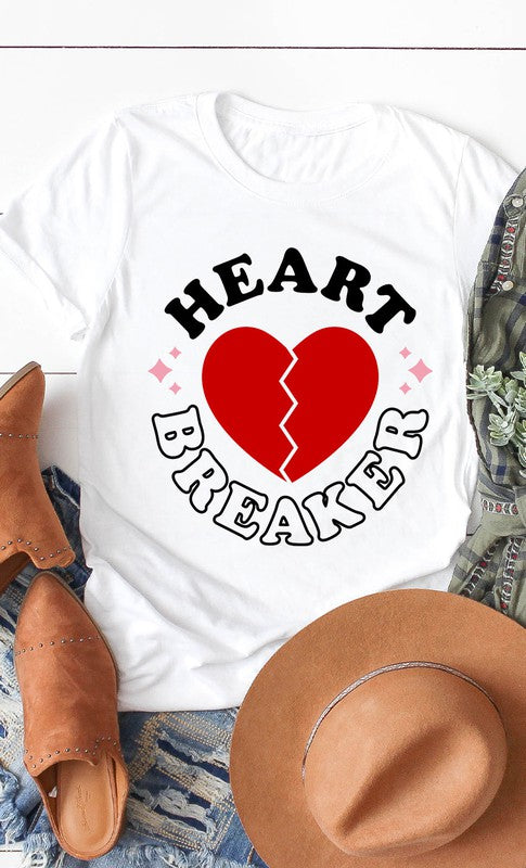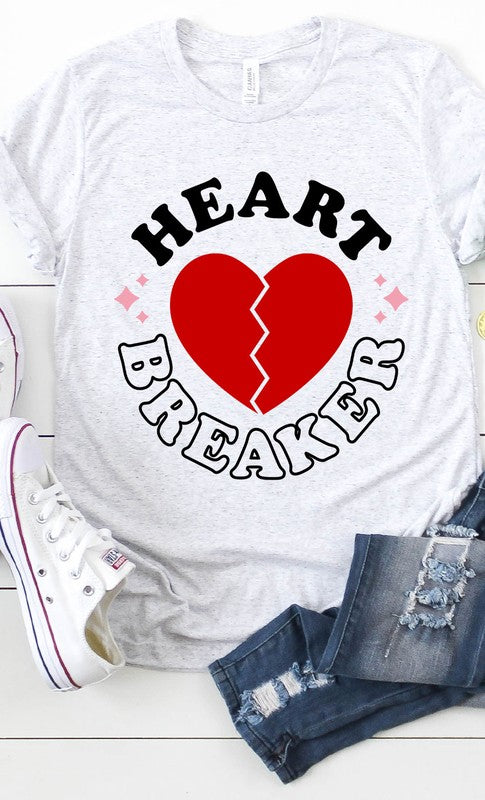 Retro Heart Breaker Tee PLUS. Most t-shirt colors are 52/48 Airlume combed and ringspun cotton/polyester, Athletic Heather & Black Heather are 90/10 airlume combed and ringspun cotton/polyester. White, cream, canvas red, lilac, mint are 100% cotton.