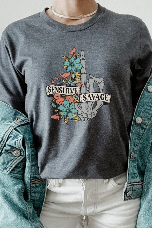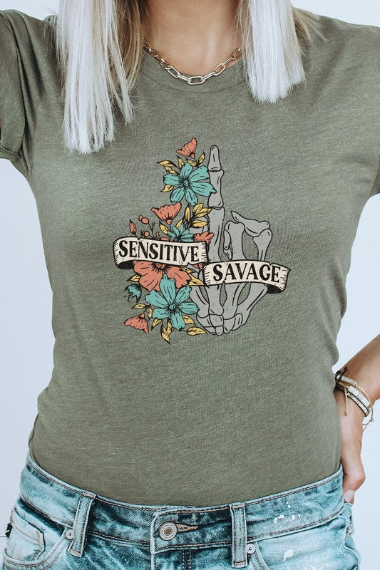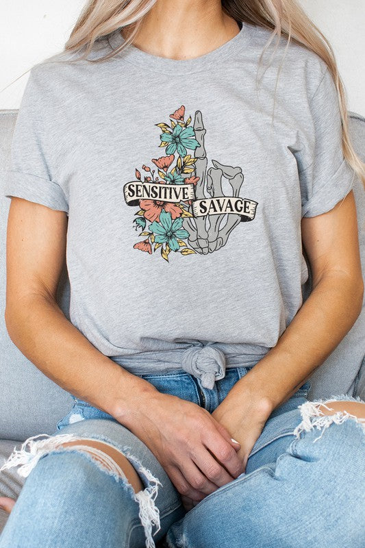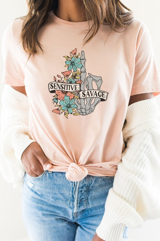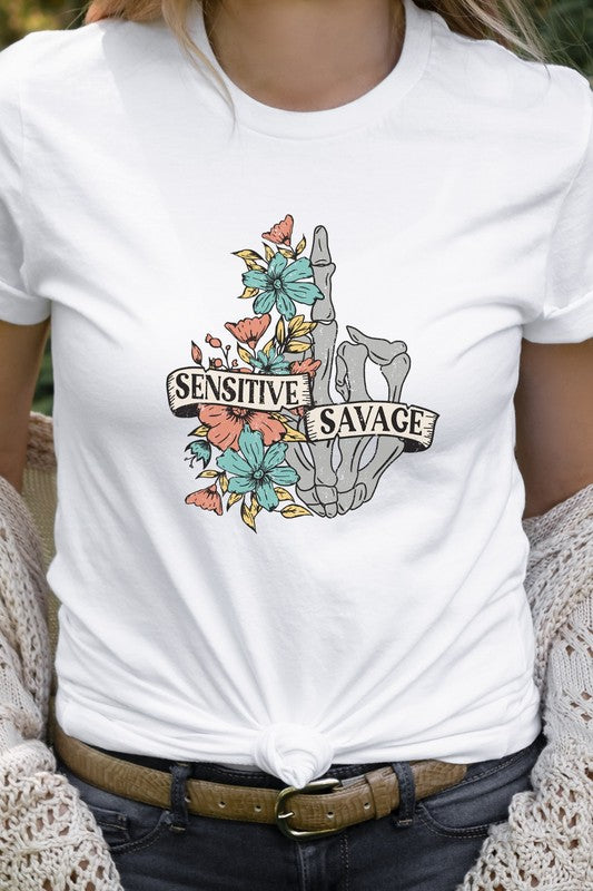 Sensitive Savage Floral Skeleton Hand Graphic Tee