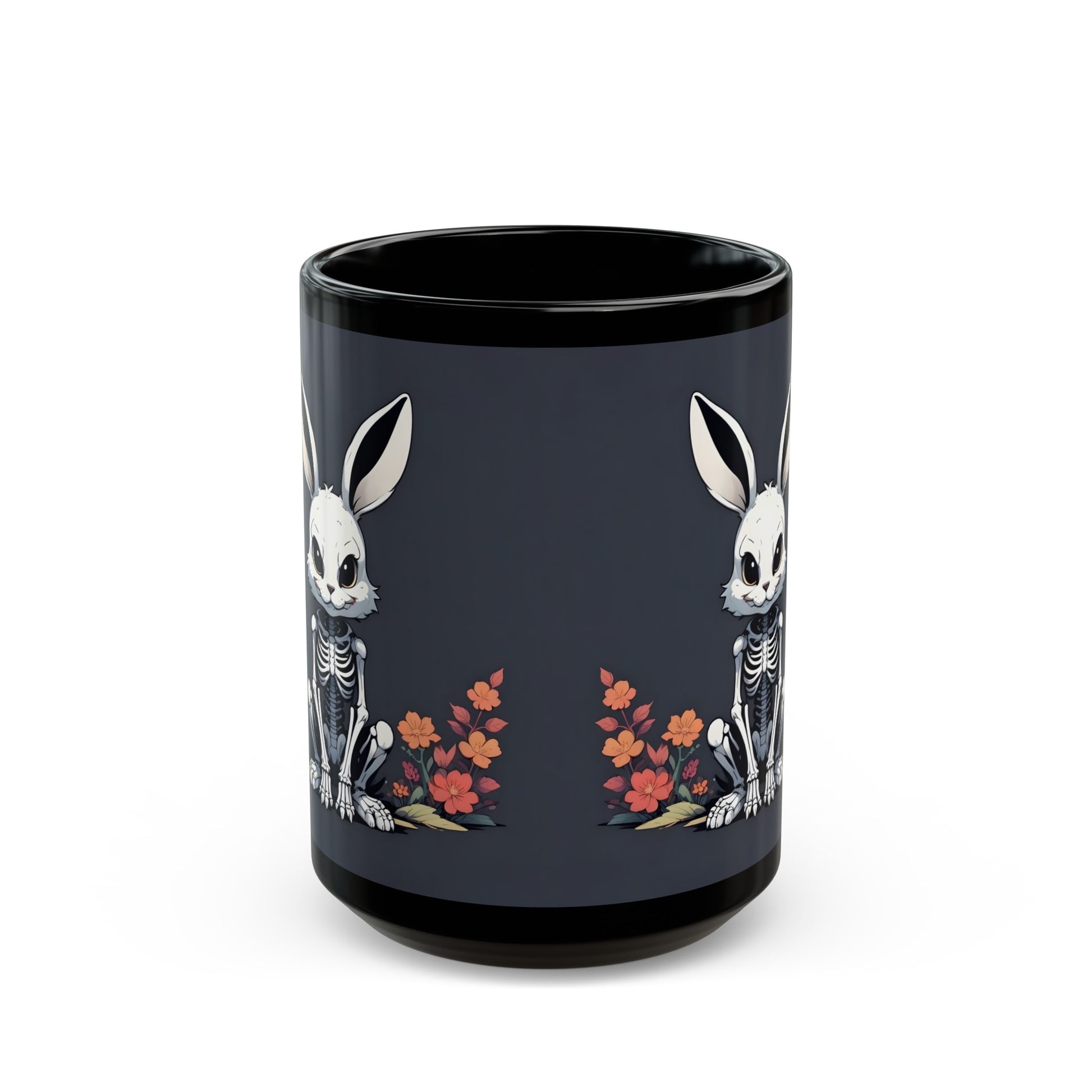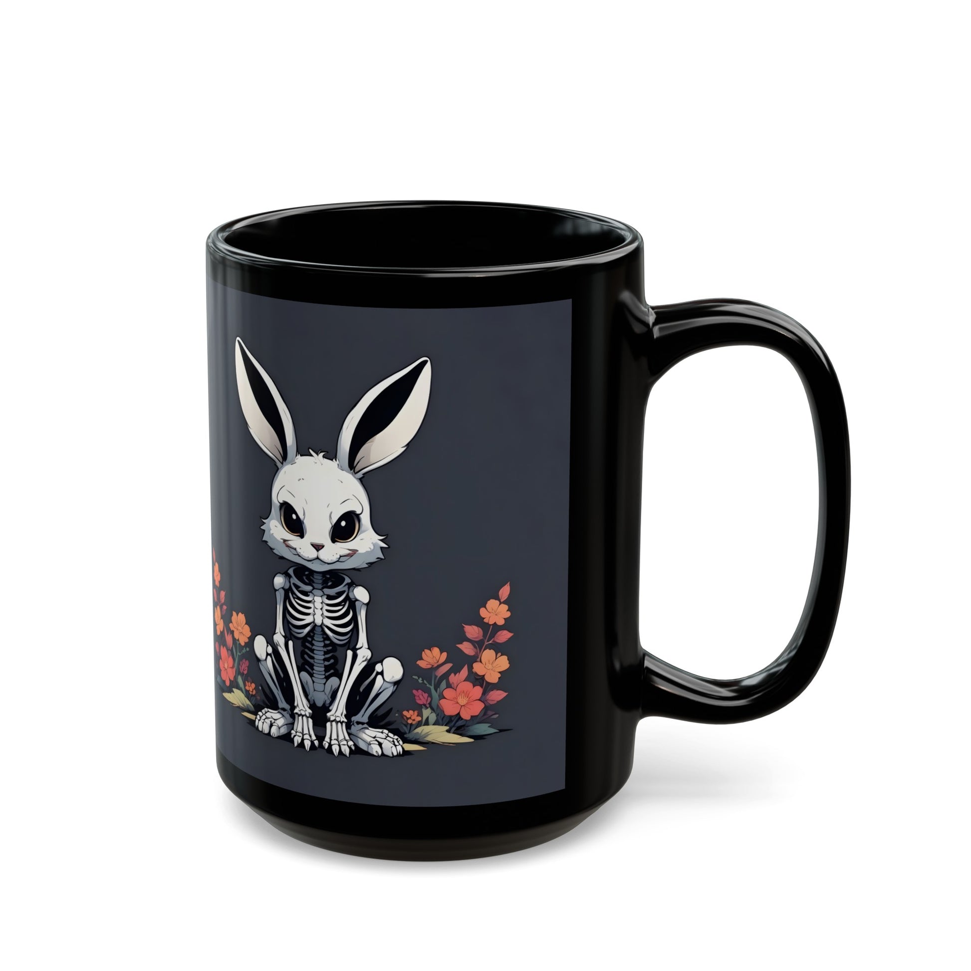 Made from durable black ceramic, this mug is built to last, and its available in two sizes - 11-ounce and 15-ounce - to suit your caffeine needs. Whether you're a fan of Gothic charm or just looking to add a dash of dark whimsy to your morning routine, this mug is the perfect way to start your day off right. So, pour yourself a cup, and let the Skeleton Goth Bunny bring a little bit of spooky joy to your daily routine.