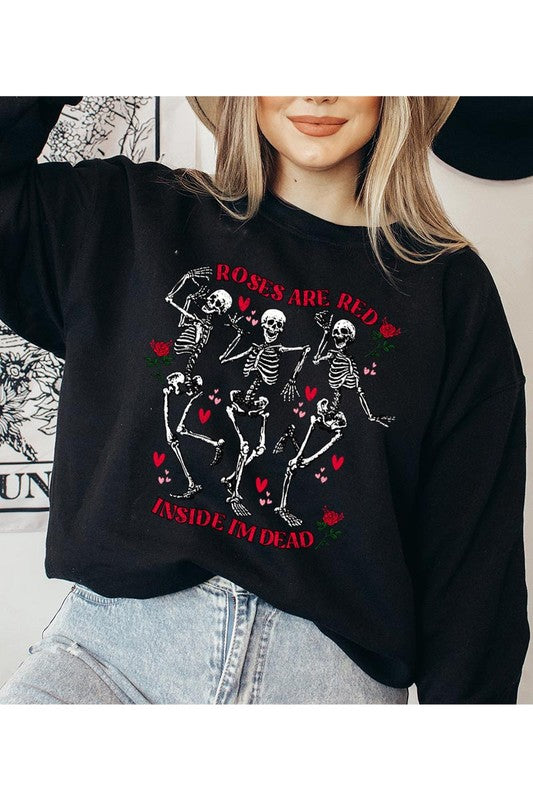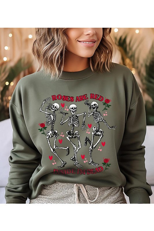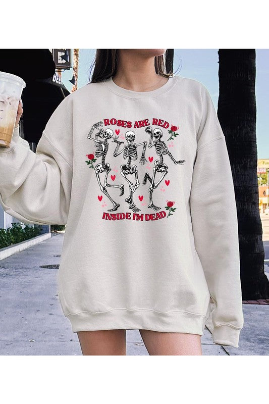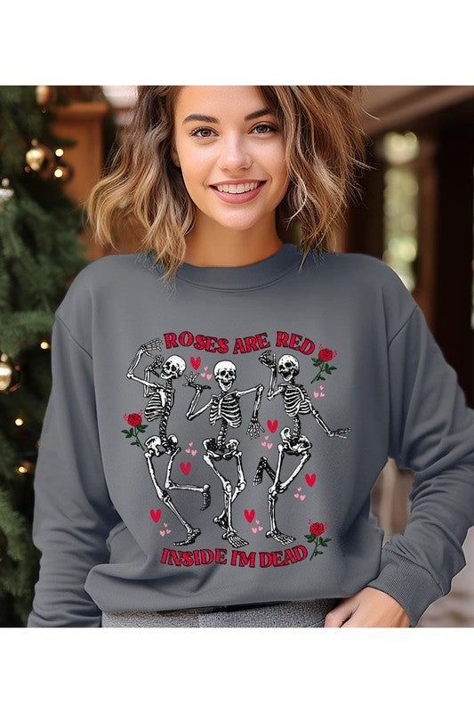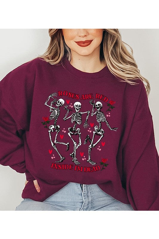 ROSES ARE RED, INSIDE I'M DEAD,SKELETONS,VALENTINE UNISEX FLEECE SWEATSHIRT,GRAPHIC TEE,GRAPHIC TSHIRTS,TSHIRTS,TEES