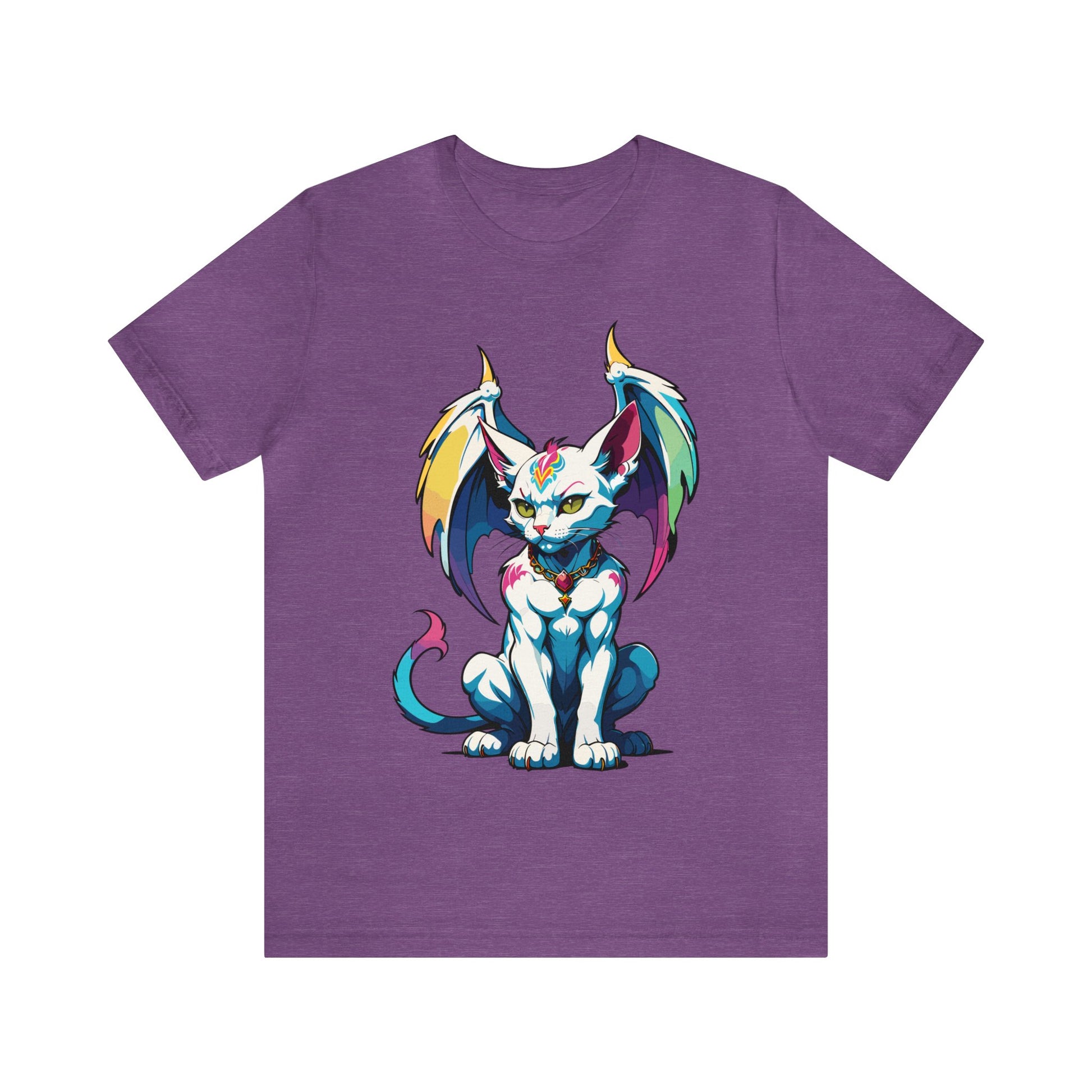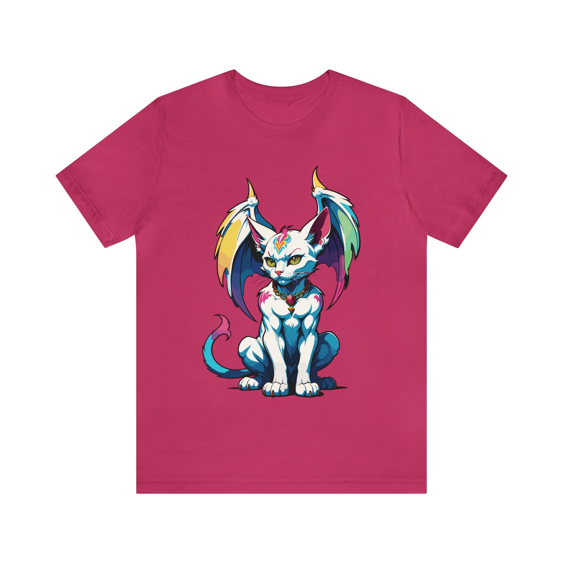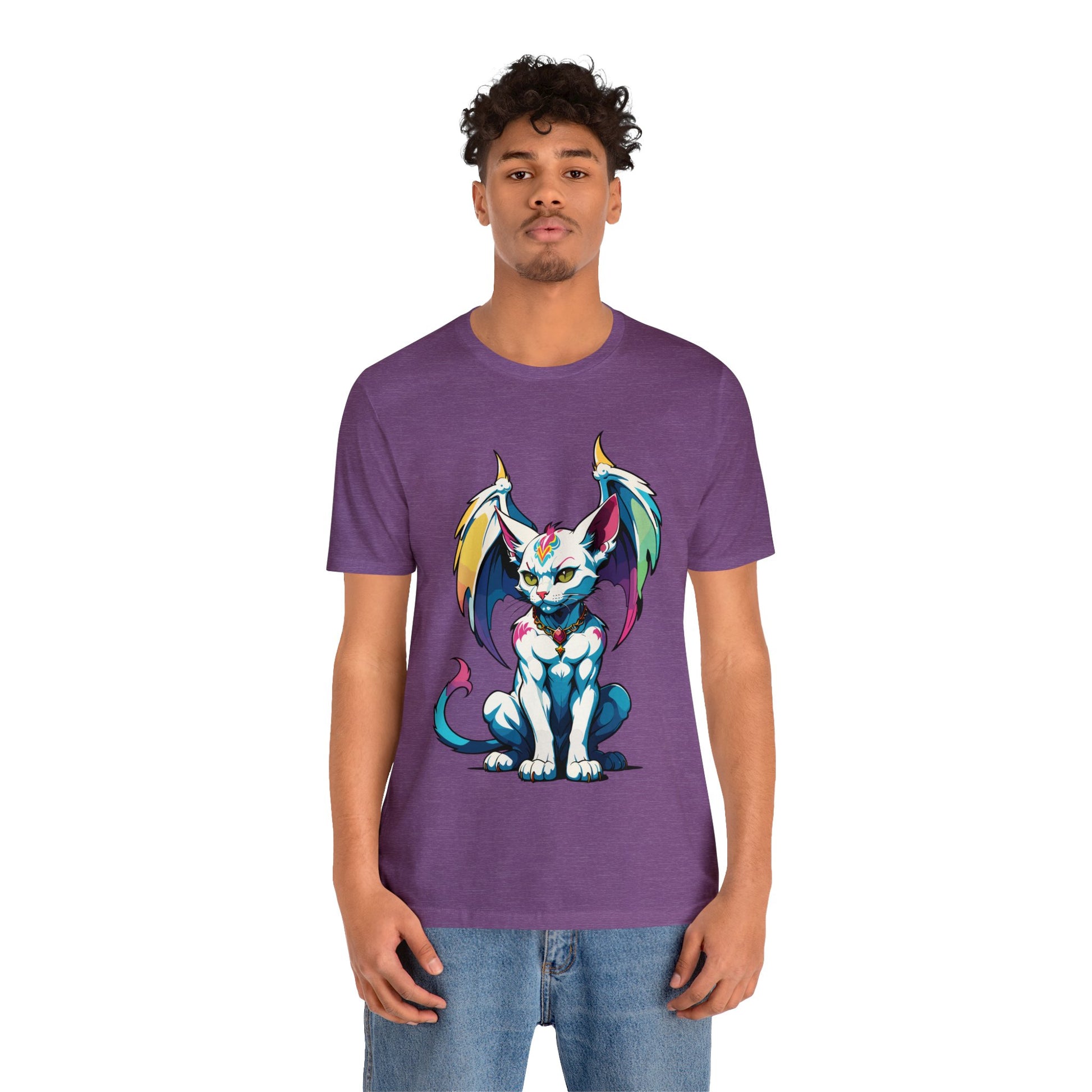 Unleash your unique style with our Cat Gargoyle Tee, featuring colorful wings and a spectrum of bright shirt color options. This shirt combines a cool, edgy aesthetic with the comfort of soft cotton and a quality print that will make you fall in love over and over again. Designed with ribbed knit collars for shaping, tapered shoulders for an improved fit over time, and dual side seams to maintain the garment's shape for the long haul.