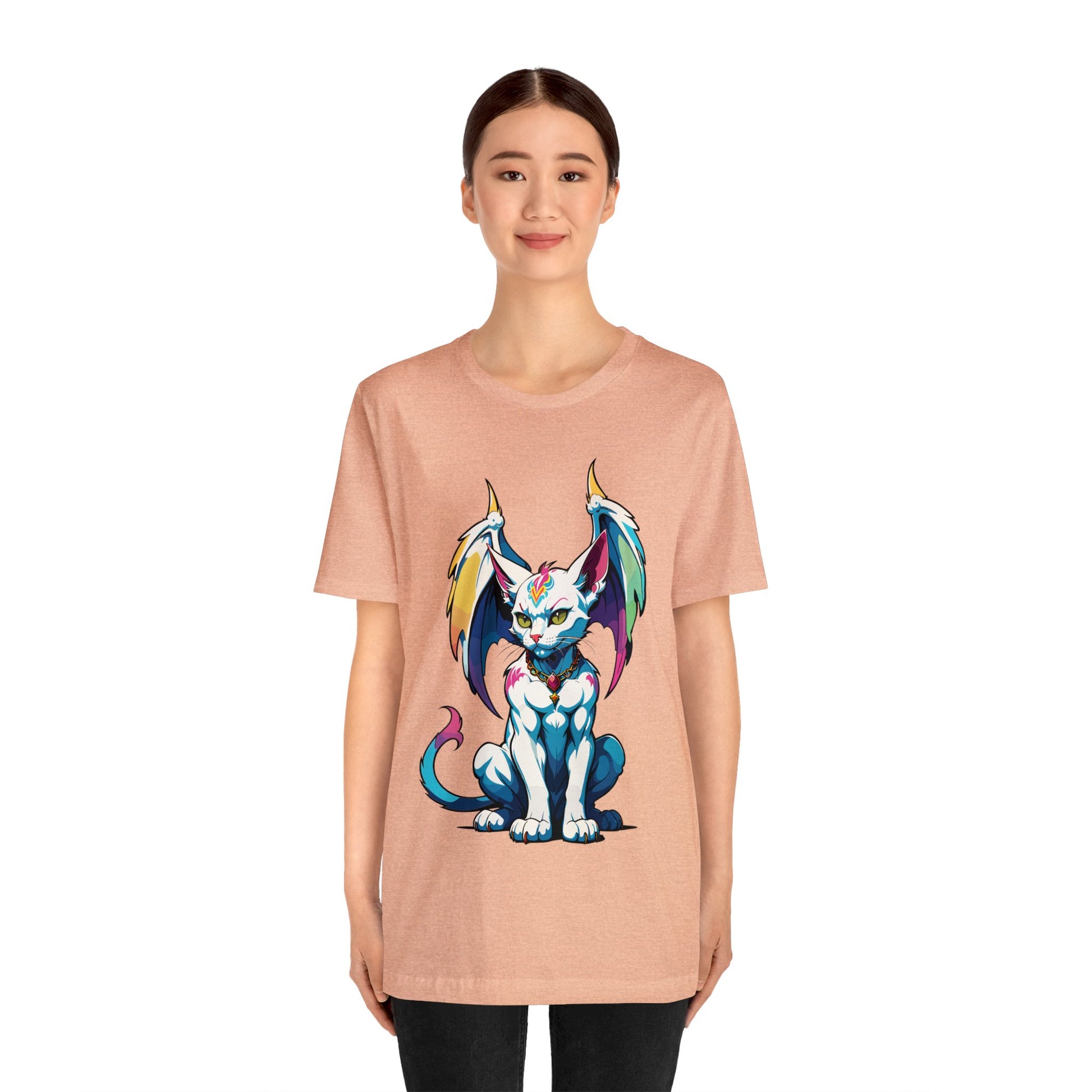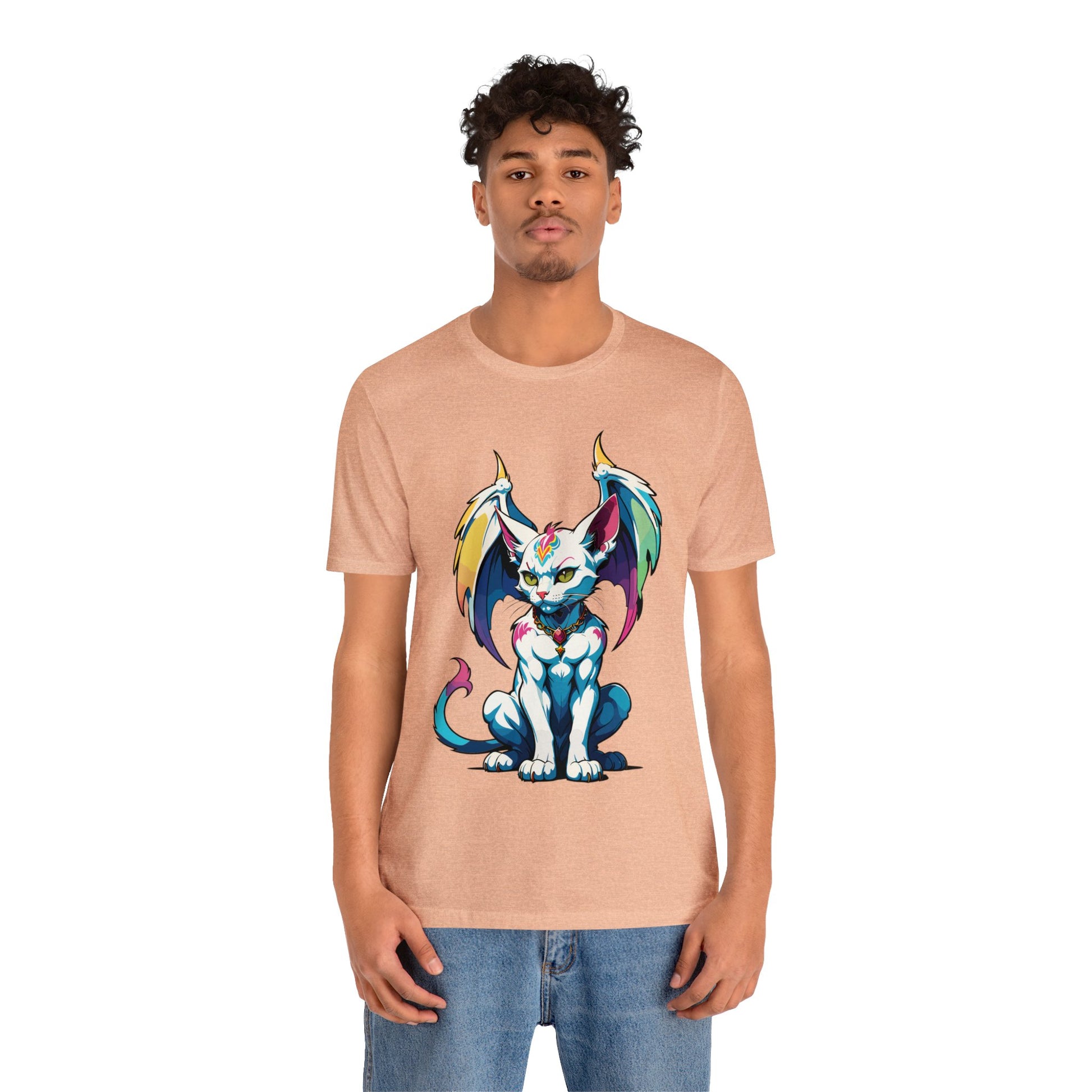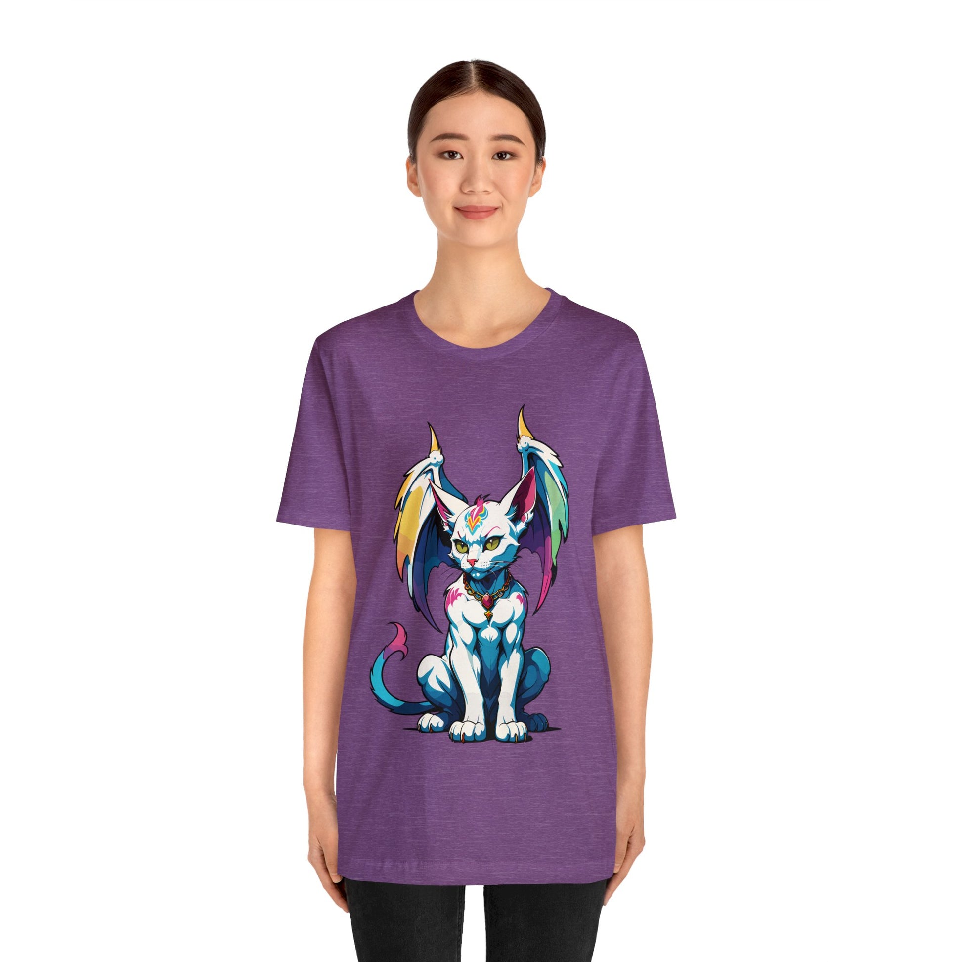 Unleash your unique style with our Cat Gargoyle Tee, featuring colorful wings and a spectrum of bright shirt color options. This shirt combines a cool, edgy aesthetic with the comfort of soft cotton and a quality print that will make you fall in love over and over again. Designed with ribbed knit collars for shaping, tapered shoulders for an improved fit over time, and dual side seams to maintain the garment's shape for the long haul.