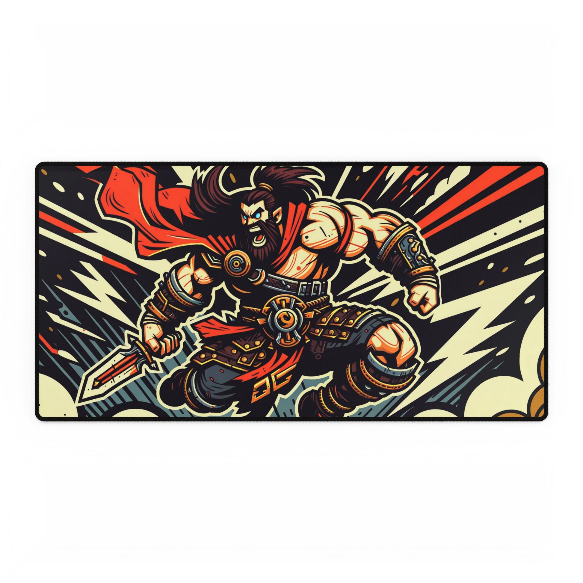 Unleash your gaming spirit with the Viking Attack Large Extended Gaming XL Mouse Pad. This extraordinary mouse pad features an epic digital illustration of a fierce Viking character, complete with a sword, charging fearlessly into battle. The striking graphic design not only enhances your gaming setup but also immerses you in a realm of adventure every time you play. With ample surface area for precise movements and vibrant artwork that demands attention, this mouse pad is perfect for gamers who seek both functionality and fierce style. Elevate your gaming experience and conquer your opponents with the power of the Viking spirit right beneath your fingertips!