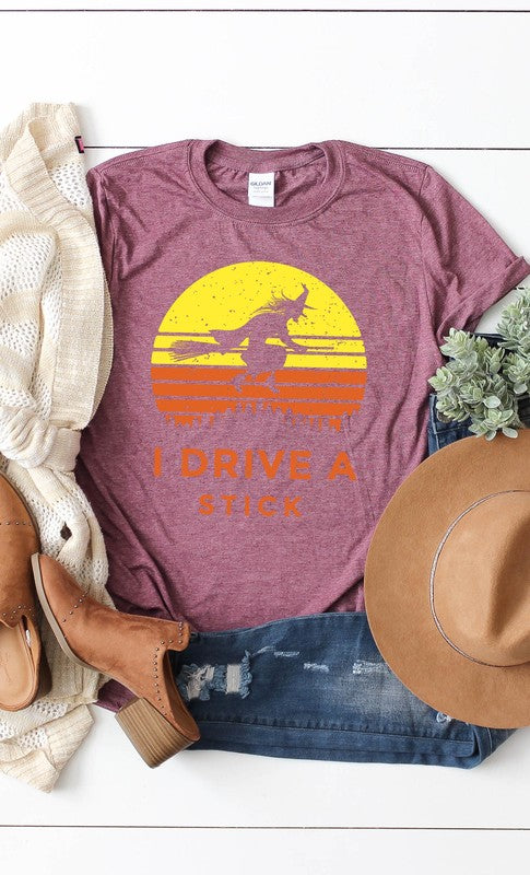 Introducing the "Witch I Drive A Stick" Halloween Graphic Tee from Kissed Apparel. Elevate your merchandise with this playful and bewitching design. Featuring a witch-themed graphic, it adds a touch of whimsy to any outfit. Most t shirt colors are 52/48 cotton/poly blend. White tees are 100% cotton. Perfect for Halloween enthusiasts and those with a sense of humor. Order now to enhance your business's fashion line and enchant customers with this stylish and fun tee.